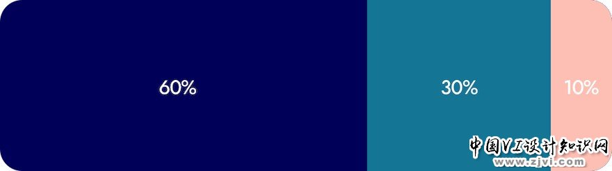 60%+30%+10%的原则,是达到色彩平衡的最佳比例。在60%的空间使用主色,30%的空间使用辅助色,最后剩下10%的空间为另外一种色彩。这样可以使用户眼睛从一点移动到下一个点时,非常舒服。